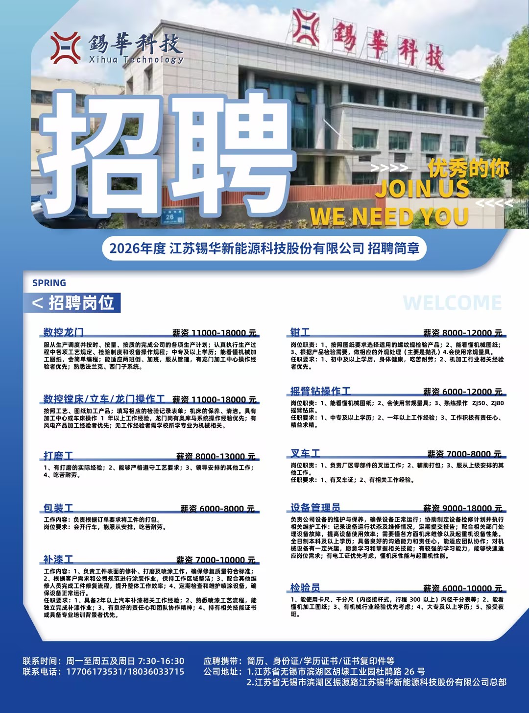 2026年度江苏锡华新能源科技股份有限公司招聘简章